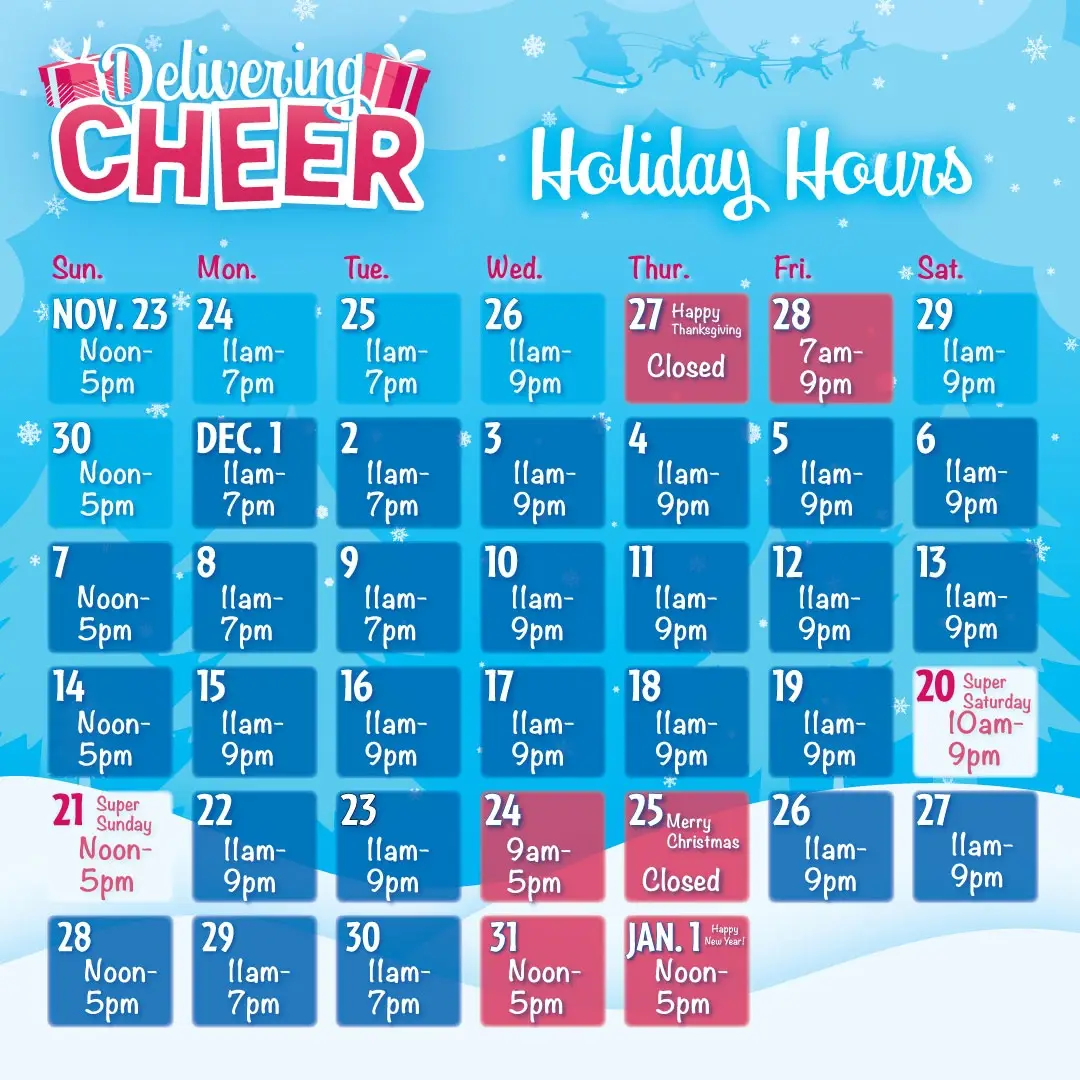 - Wednesday, December 24 (Christmas Eve) 9am-5pm